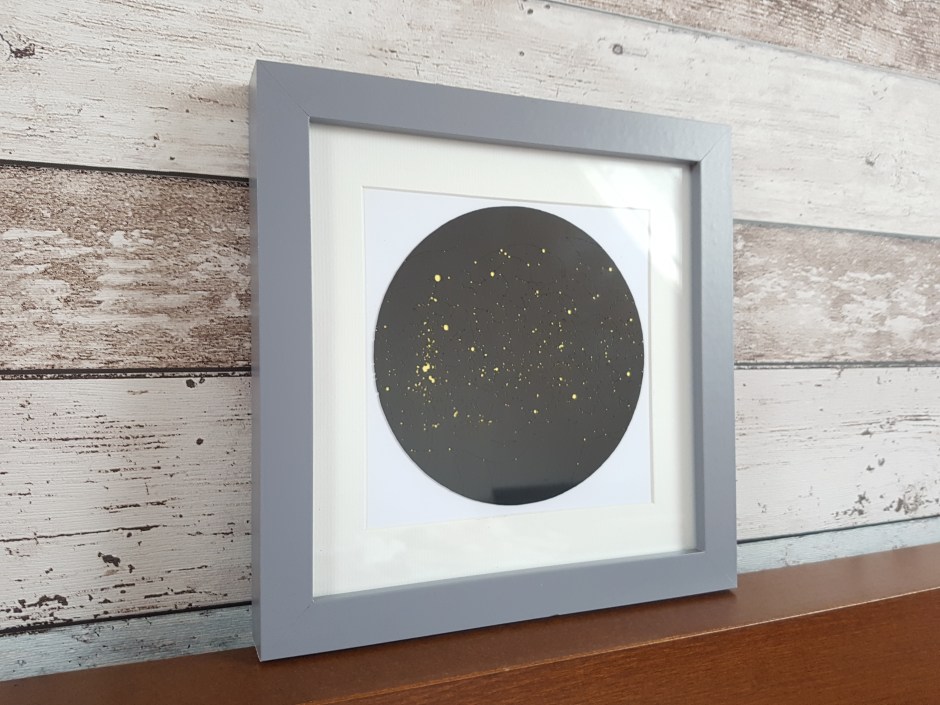 The project was completed in two stages. First I ran a job to cut out the stars, followed by a job to engrave the constellations as they were visible at the time of my nephews birth.
